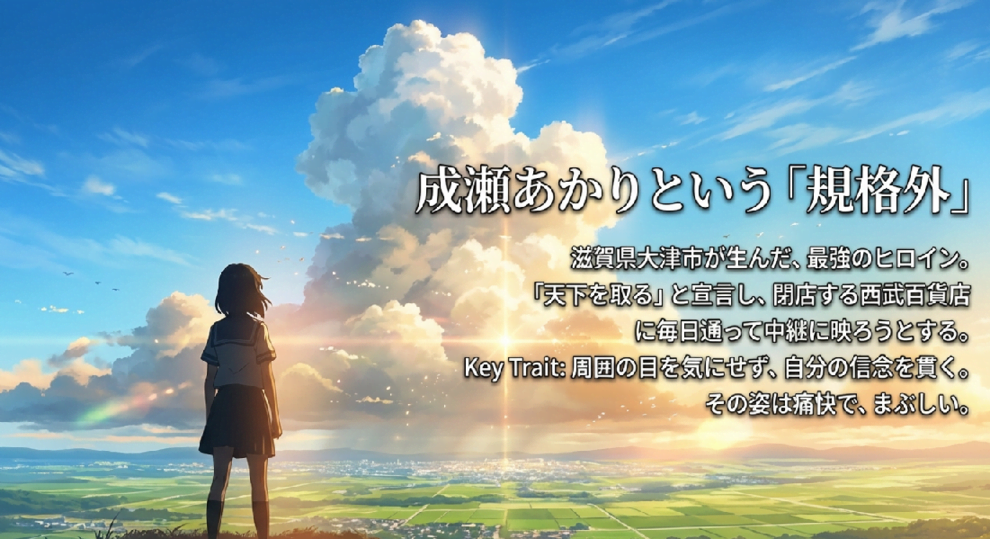 成瀬あかりという規格外のヒロインが、私の凝り固まった日常を鮮やかに塗り替えてくれた記録です。